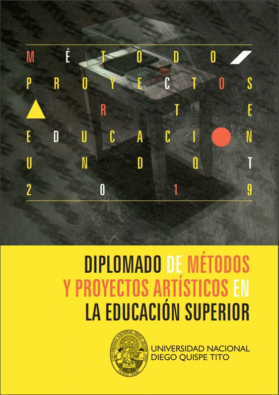 "...La UNDQT desarrolló del 05 al 16 de agosto del 2019 el diplomado al que llamamos: “Métodos y proyectos artísticos en la educación superior”, en el cual participaron todos los docentes nombrados y contratados de nuestra casa de estudios. El objetivo principal de esta actividad académica fue capacitar a nuestros docentes en el desarrollo de una metodología aplicables en la elaboración de proyectos de investigación artística, durante la educación superior. No obstante, nuestro deseo fue que el impacto de este diplomado no se quede solo en el ámbito del claustro universitario. Es por esa razón que desde el inicio y la planificación de este programa educativo se contempló la edición de un libro que recogiera esta experiencia. De esta forma este texto pretende convertirse en un espacio de consulta que pueda generar un debate y una reflexión sobre la investigación en el arte y la educación superior de arte. En este compendio la comunidad artística e intelectual, del Cusco y del Perú, podrá recoger importantes reflexiones y conocimientos acerca de la investigación en artículos como: “las metodologías de la investigación cuantitativa y cualitativa en el arte”; “observaciones sobre la investigación científica en artes visuales”; “el análisis por categorías en artes visuales”; “el proceso creativo y los nuevos medios y soportes en el arte contemporáneo”; “taller de proyectos en investigación en educación artística”