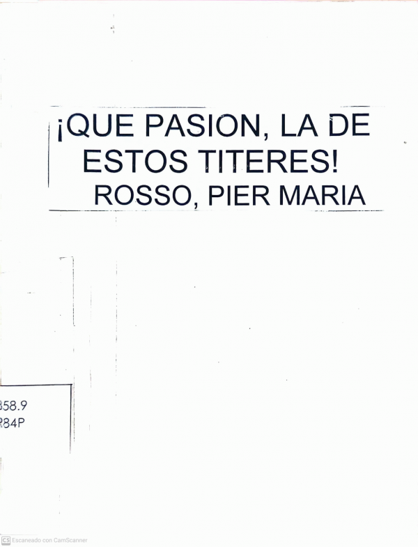 ¡Que Pasión, la de Estos Títeres! / Pier Maria Rosso di San Secondo ; Aurelio Rizza, traductor