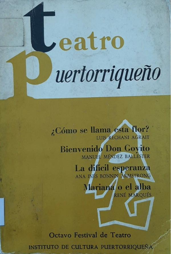 Como se llama esta Flor/ Luis Rechani Agrait -- Bienvenido don Goyito/ Manuel Méndez Ballester -- La difícil Esperanza/ Ana Inés Bonnin Armstrong -- Mariana o el Alba/ René Marqués.