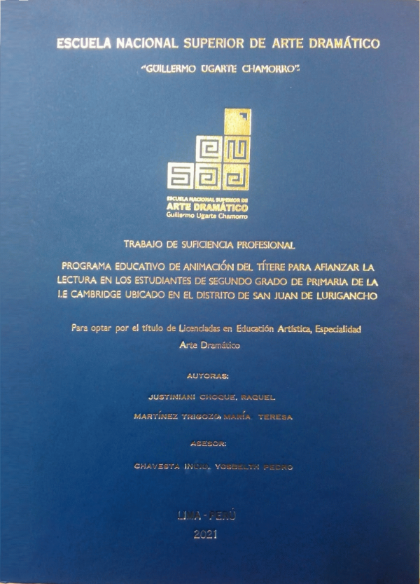 Programa Educativo de animación del títere para afianzar la lectura en los estudiantes de segundo grado de primaria de la I.E Cambridge ubicado en el distrito de San Juan de Lurigancho / Raquel Justiniani Choque y María Teresa Martínez Trigozo