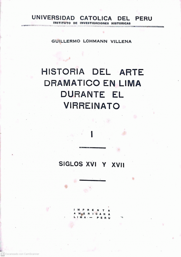 Historia del arte dramático en Lima durante el Virreinato I : siglosXVI y XVII / Guillermo Lohmann Villena