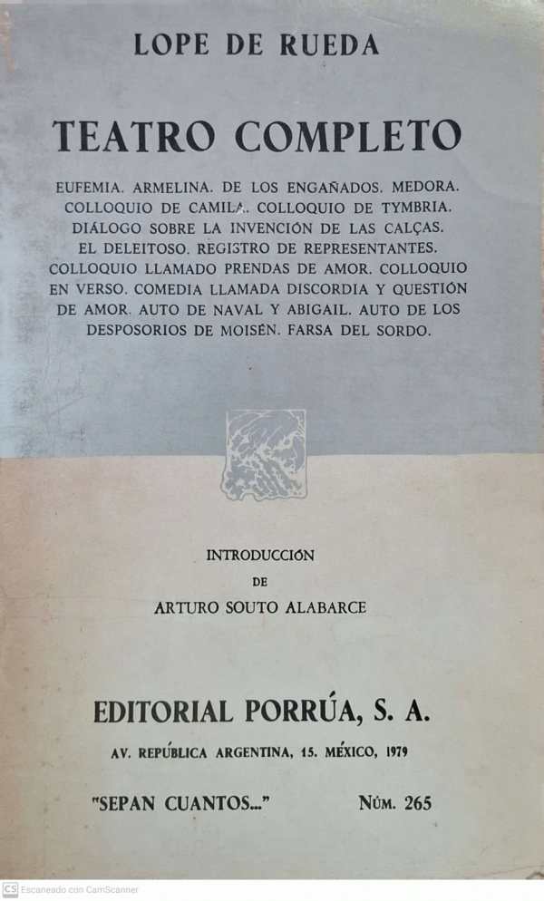 Eufemia -- Armelina -- De los engañados -- Medora -- Colloquio de Camila -- Colloquio de Tymbria -- Dialogo sobre la invención de las calcas -- El deleitoso -- Registro de representantes -- Prendas de amor -- Discordia y questión de amor -- Auto de Naval y de Abigail -- Auto de los Desposorios de Moisén Farsa del sordo