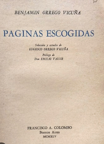 Páginas escogidas / Benjamin Orrego Vicuña ; Eugenio Orrego Vicuña, editor ; Emilio Vaisse, prologuista